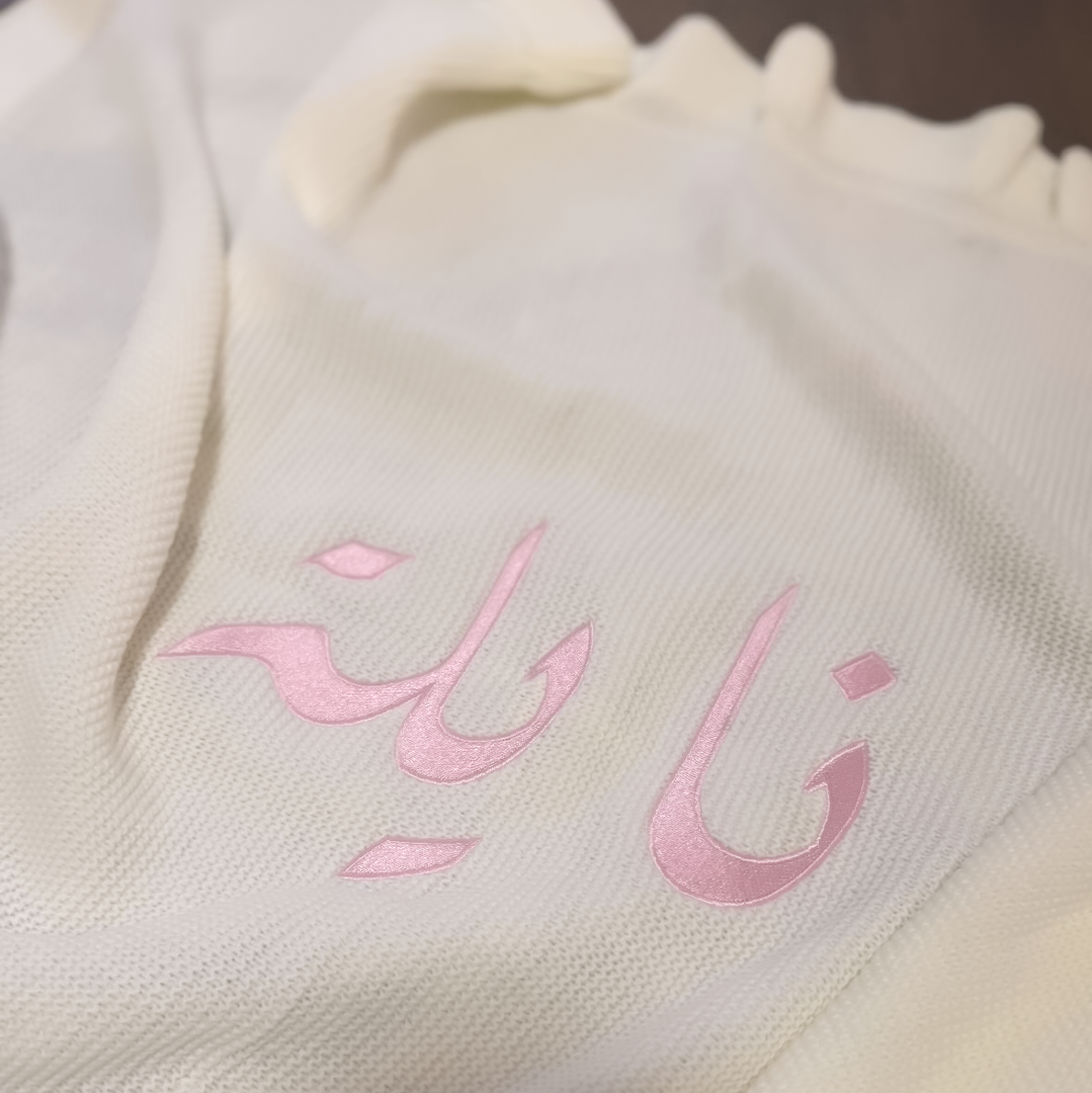 Sized at 70 x 90 cm and embroidered with your baby's name in your chosen thread color.