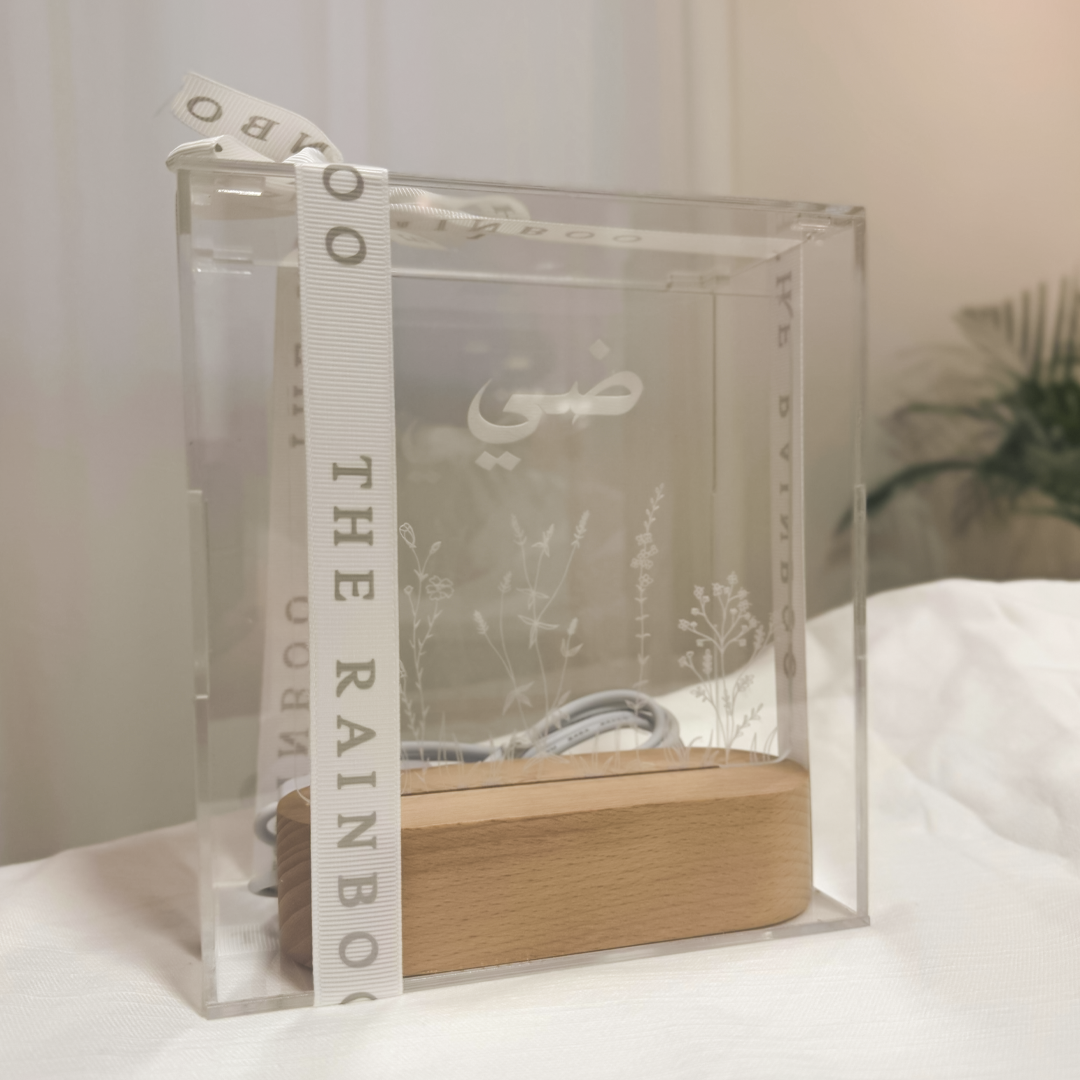 Light up your baby’s room with our Night LED Stand, featuring an engraved acrylic piece fully customized with your baby’s name and special design.